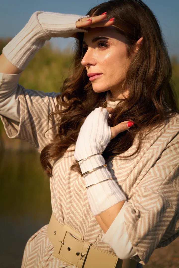 Dieses Outfit besticht durch seine mühelose Eleganz und die faszinierende Kombination aus lässigem Chic und luxuriösem Komfort. Das oversized Strickkleid von Liviana Conti schwingt bei jedem Schritt sanft mit und verleiht dem Look eine dynamische Leichtigkeit. Der kräftige Taillengürtel setzt dabei einen markanten Akzent, während der weiche Fellmantel von Herno einen Hauch von Luxus und wohlige Wärme bietet. Die Schirmkappe rundet den Look mit einer lässigen Note ab, sodass dieser Mix aus Bewegung, Stil und Komfort zu jeder Gelegenheit passt.