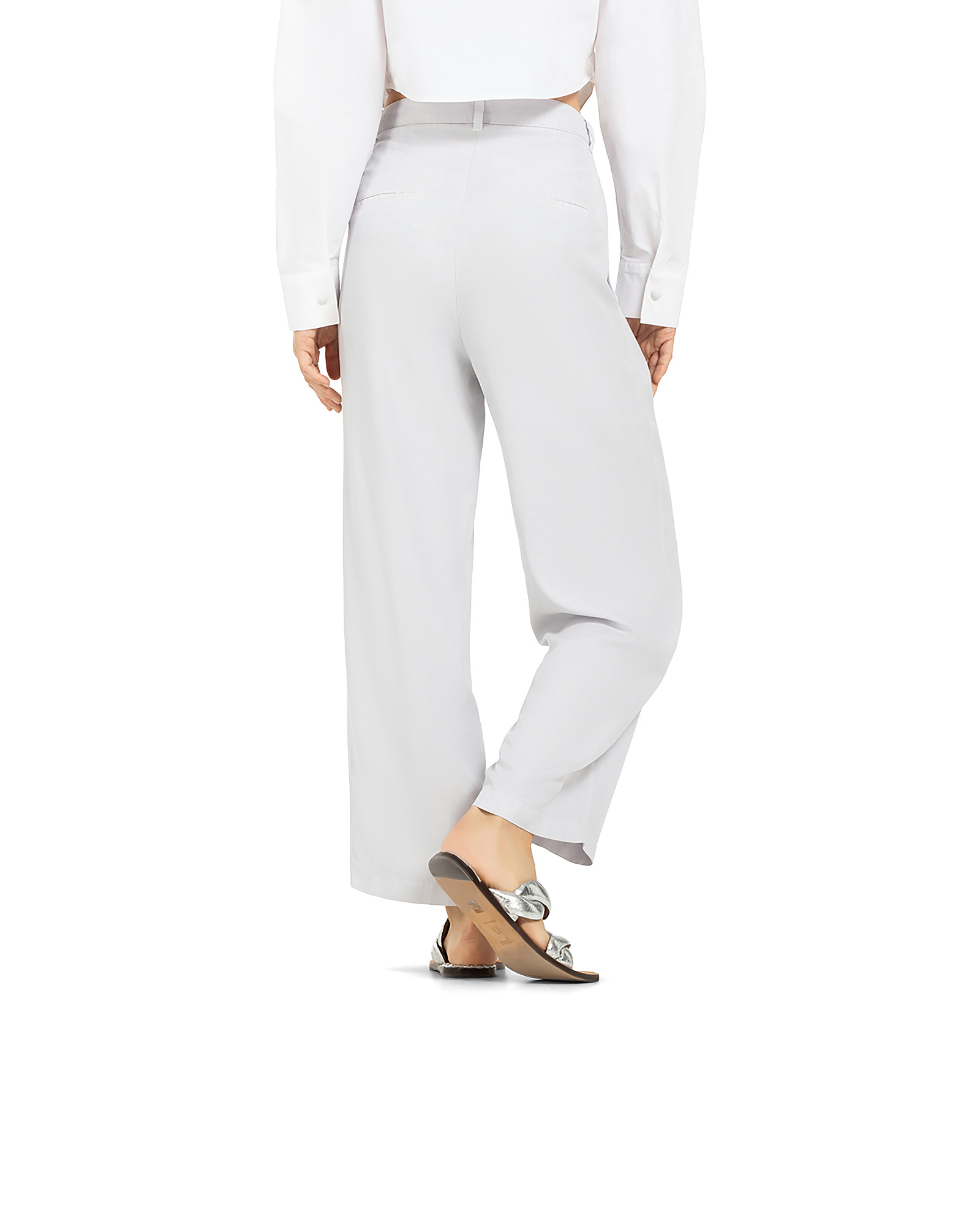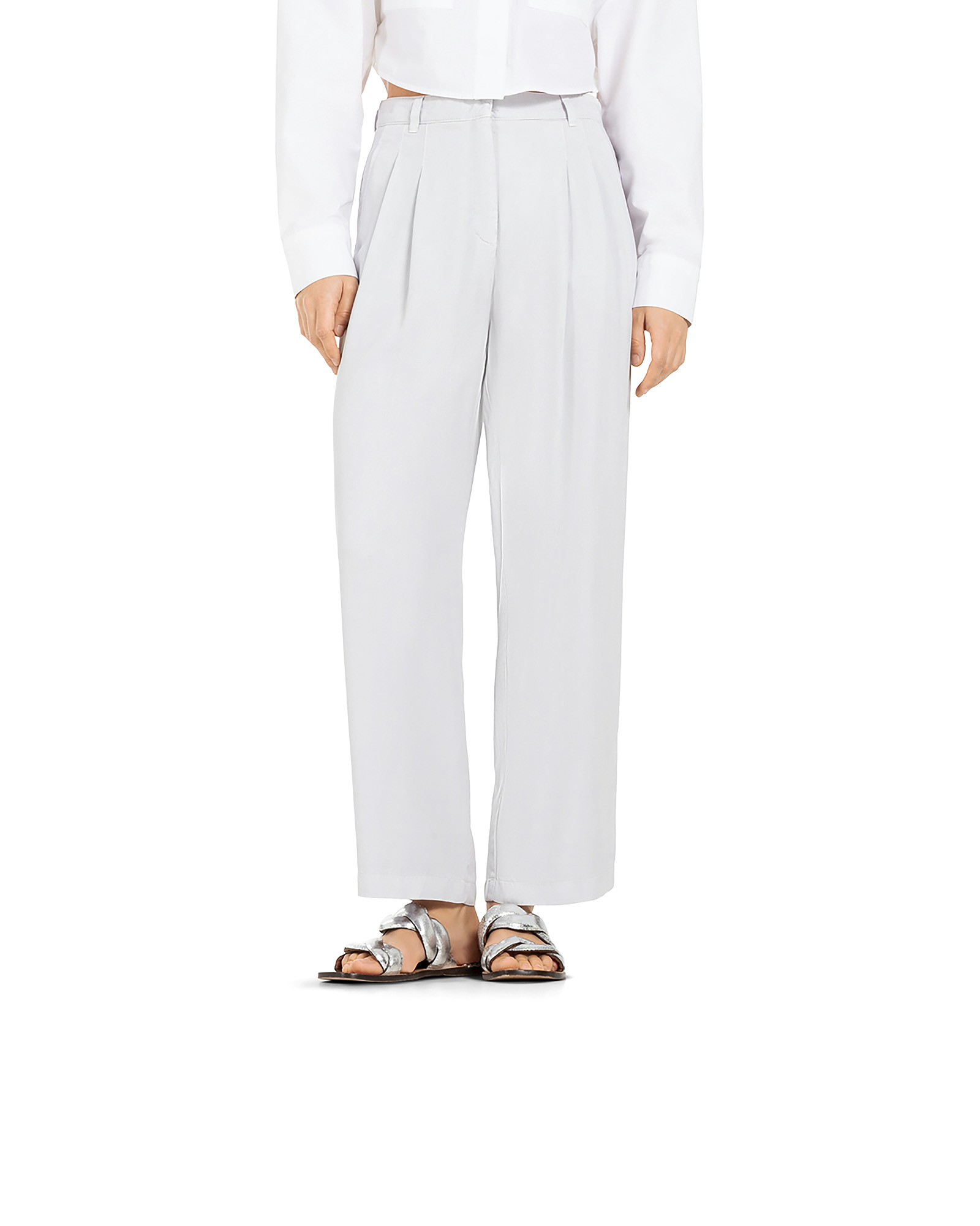 Passform & Maße | mid-rise, Bundfalten, seitliche Eingriffstaschen, weites-verkürztes Bein |