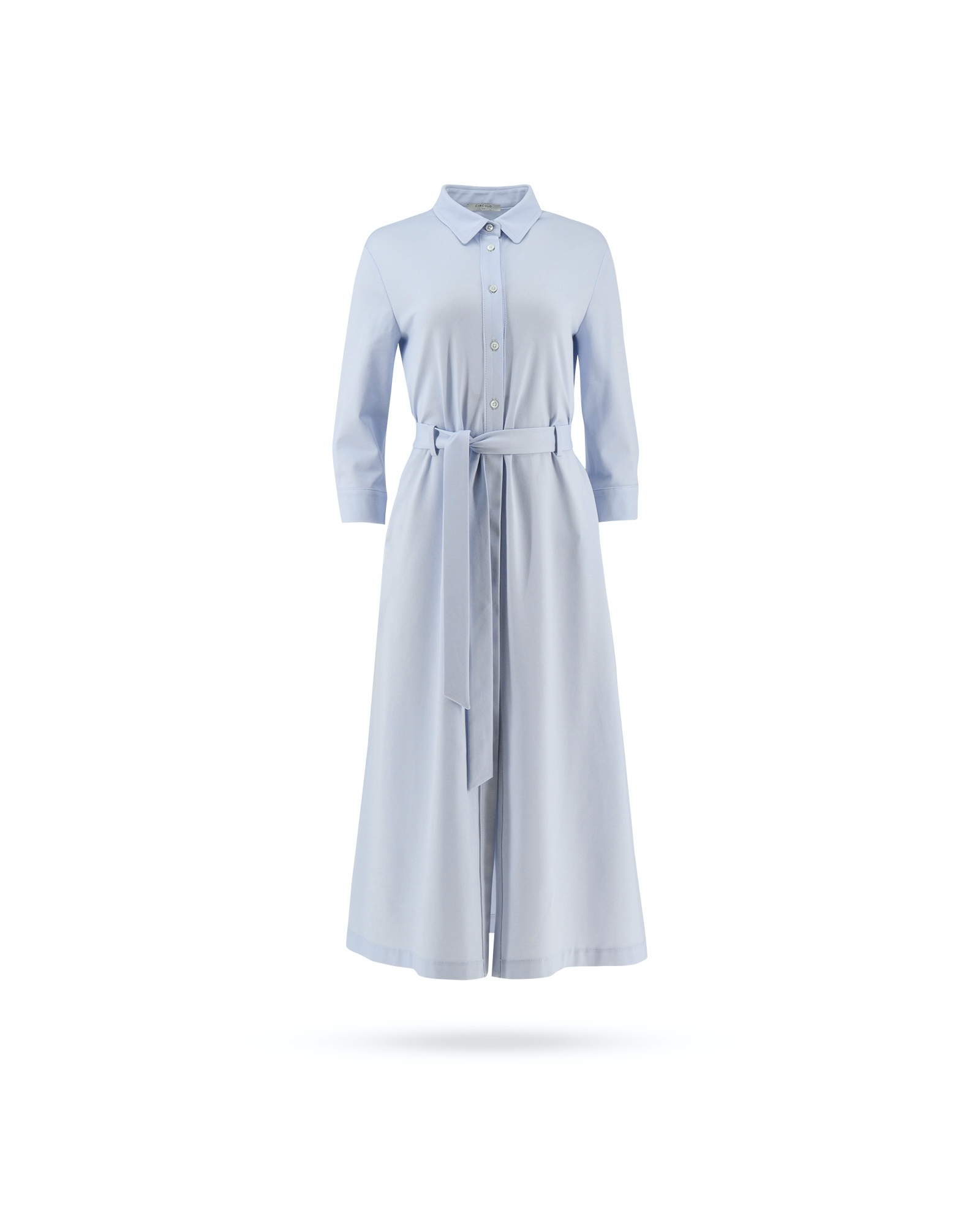 | Passform & Maße | A-Linie, Kentkragen, durchgehende Knopfleiste, 7/8 Arm, Bindegürtel |