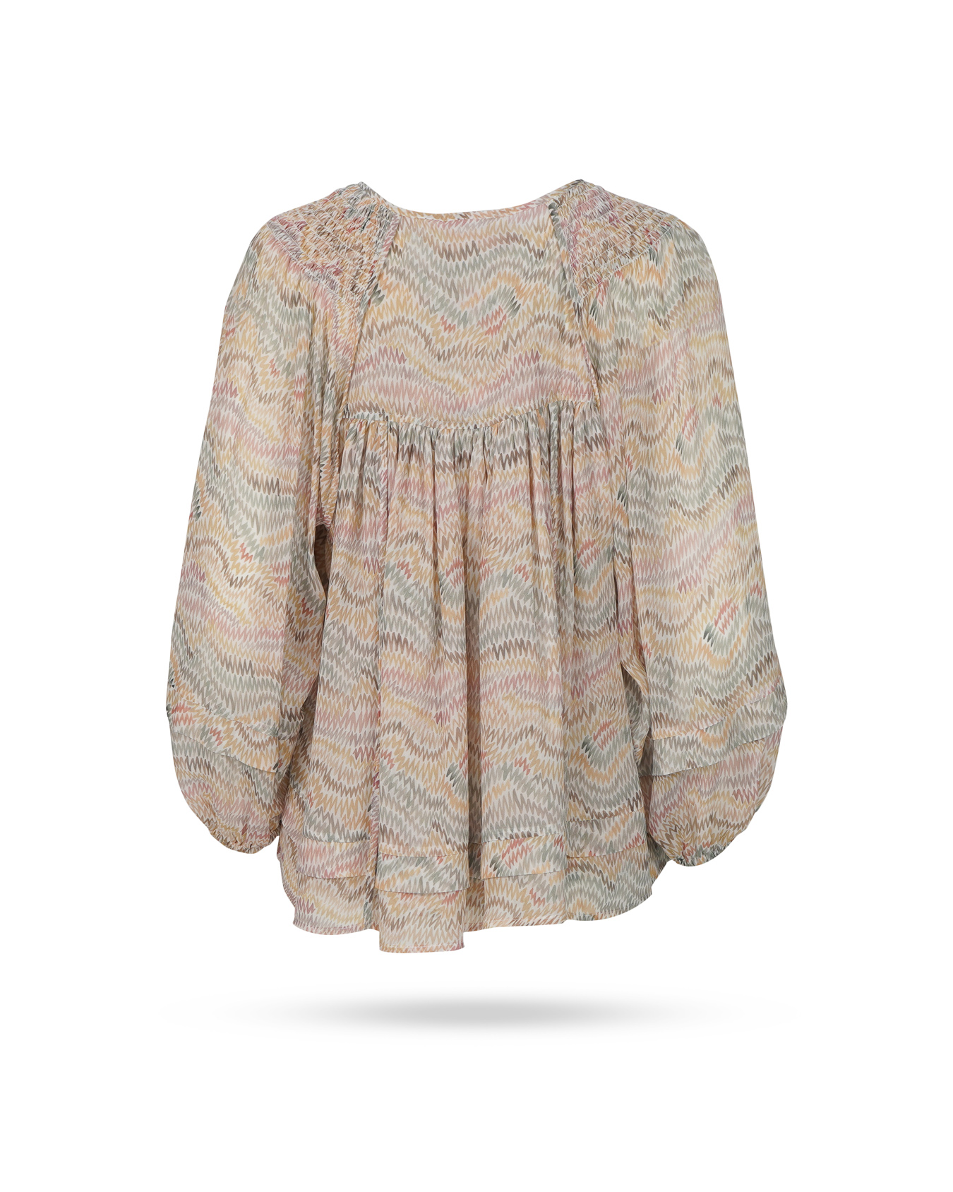Passform & Maße | A-Linie, 7/8 Ballonarm, gesmokte Schultern |