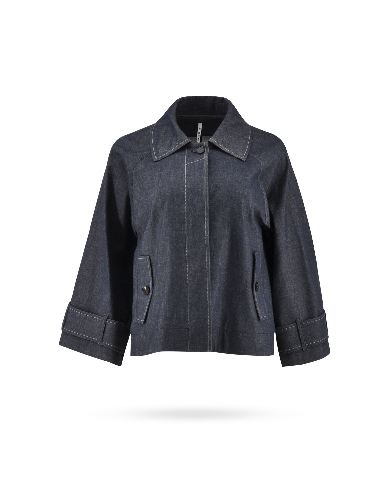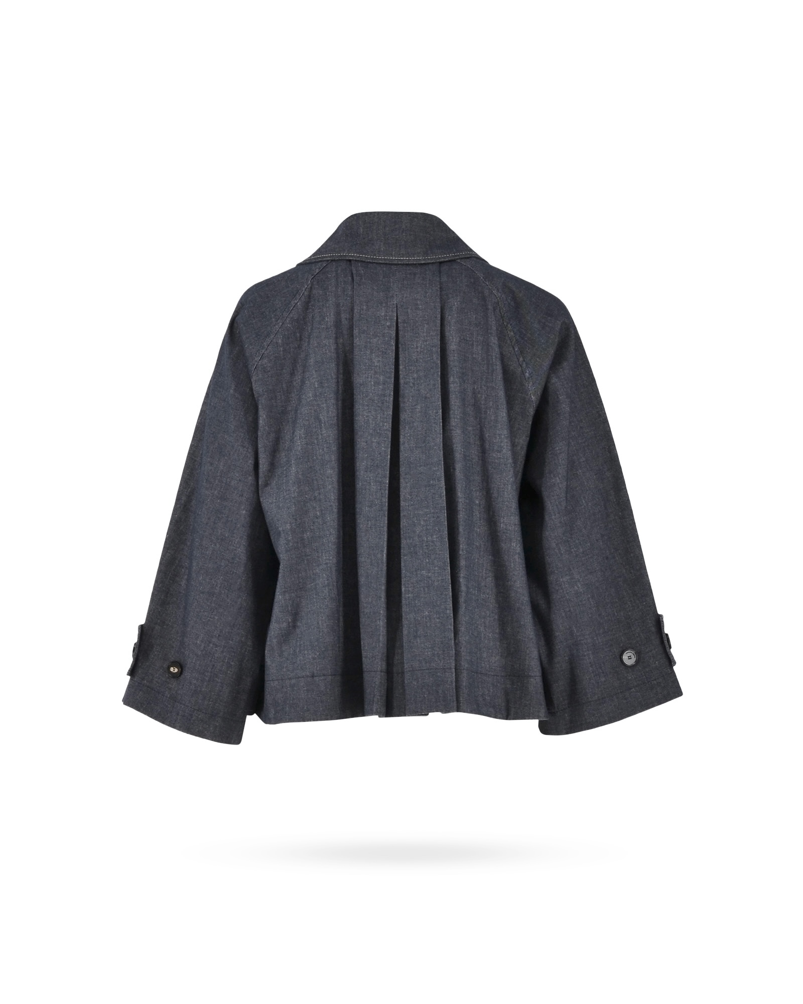 | Passform & Maße | A-Linie, versteckte Knopfleiste, 7/8 Arm, Kellerfalte am Rücken, Garnunregelmäßigkeiten sind im Denim sichtbar |