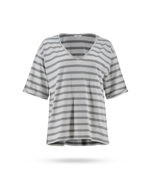 | Passform & Maße | oversized, V-Ausschnitt, Brusttasche, Rollkanten an Ausschnitt und Arm |