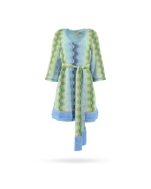 | Passform & Maße | A-Linie, V-Ausschnitt, ausgestellte Ärmel, Bindegürtel |