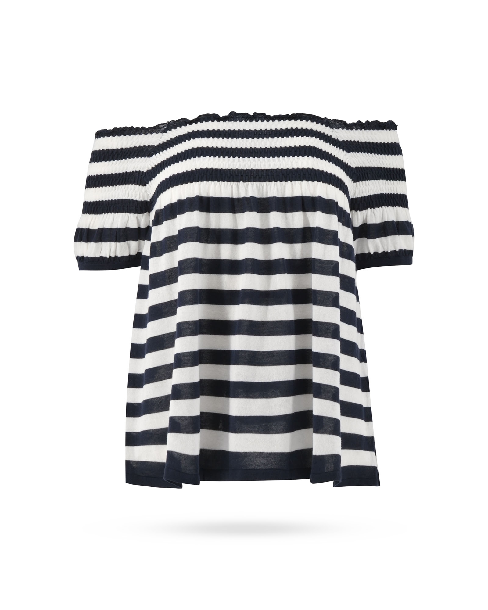 | Passform & Maße | A-Linie, off-shoulder, gesmokter Ausschnitt, kurzarm |