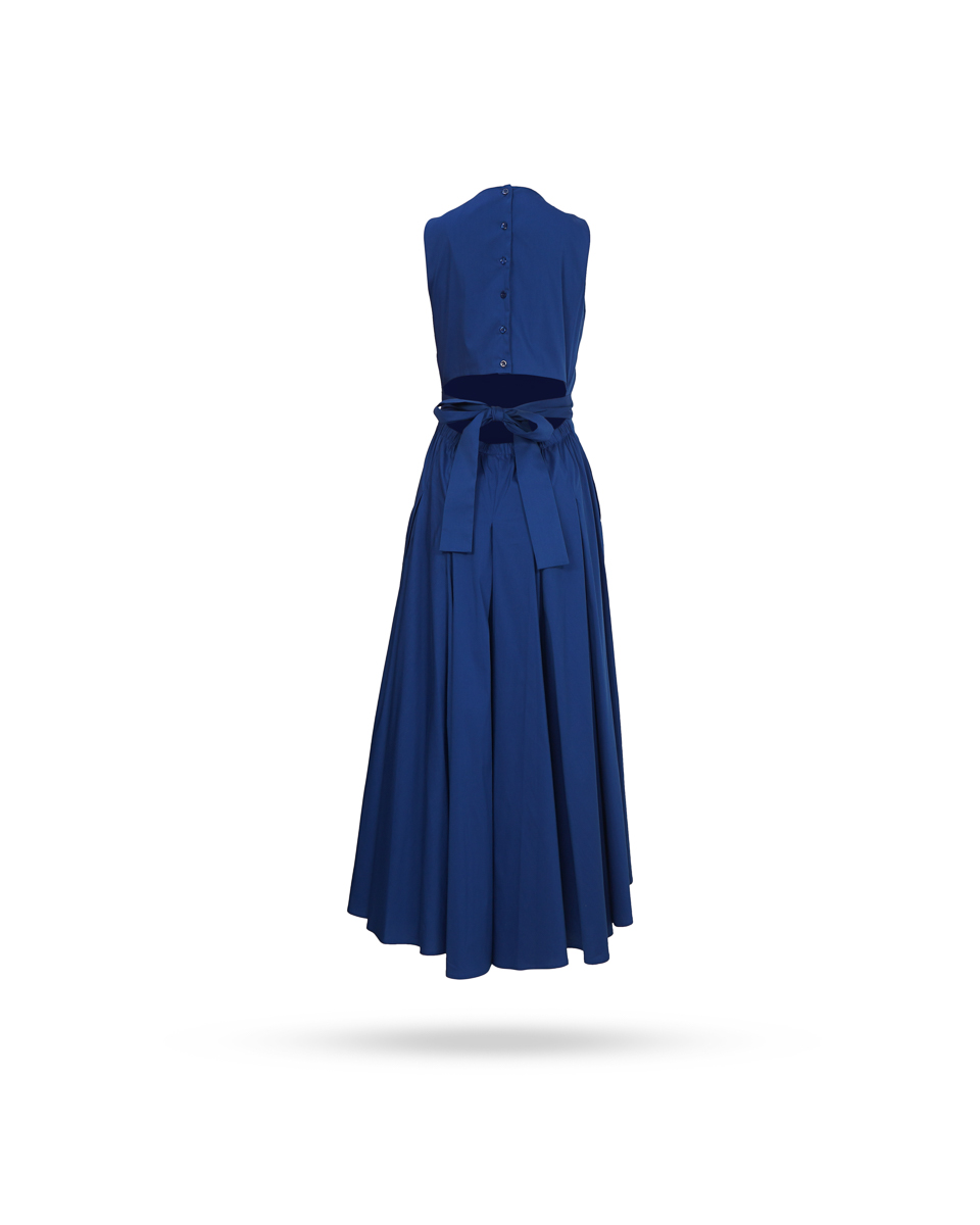 Passform & Maße | tailliert, Rundhals Ausschnitt mit Raffungen, seitliche Eingriffstaschen, Cut-Out am Rücken, mit Gürtel vorne zum Binden |