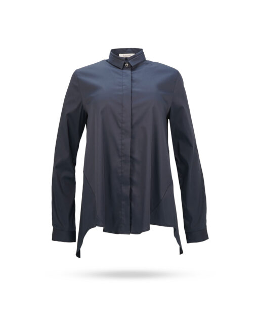 | Passform & Maße | A-Linie, vokuhila, Stehkragen, versteckte Knopfleiste |